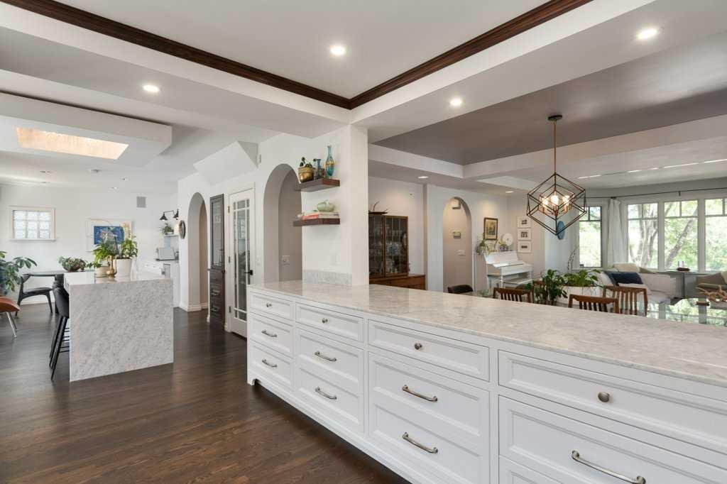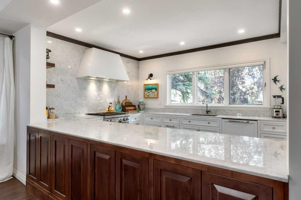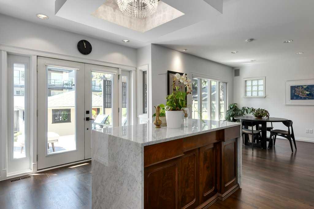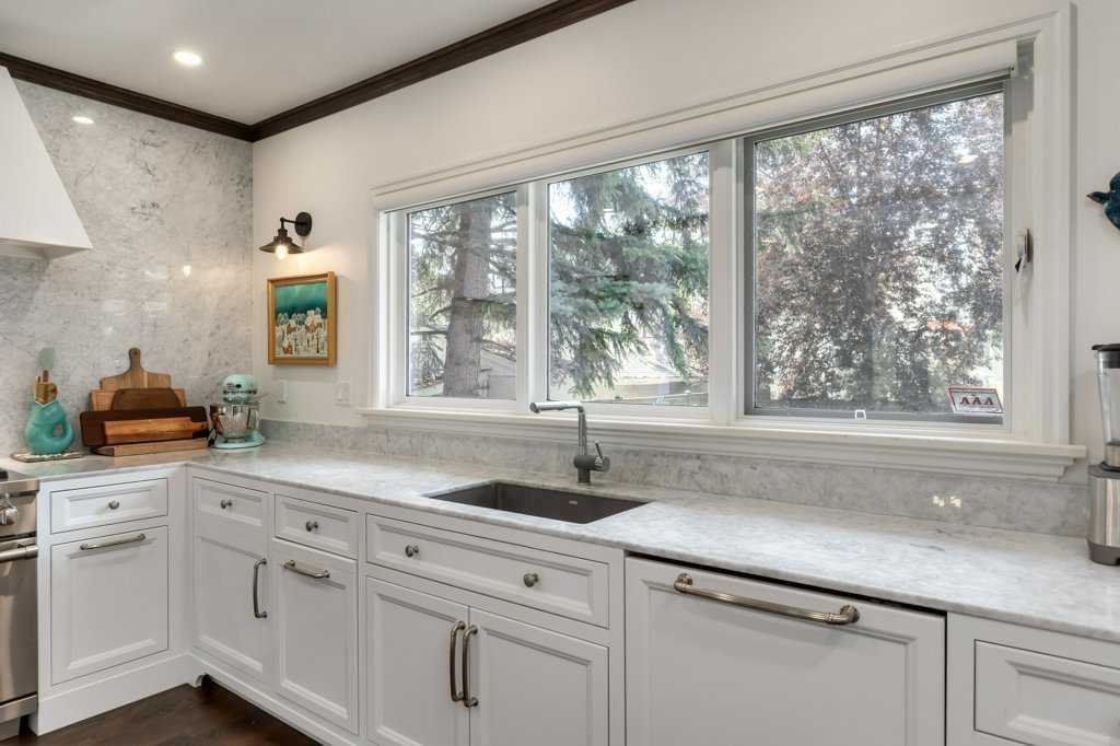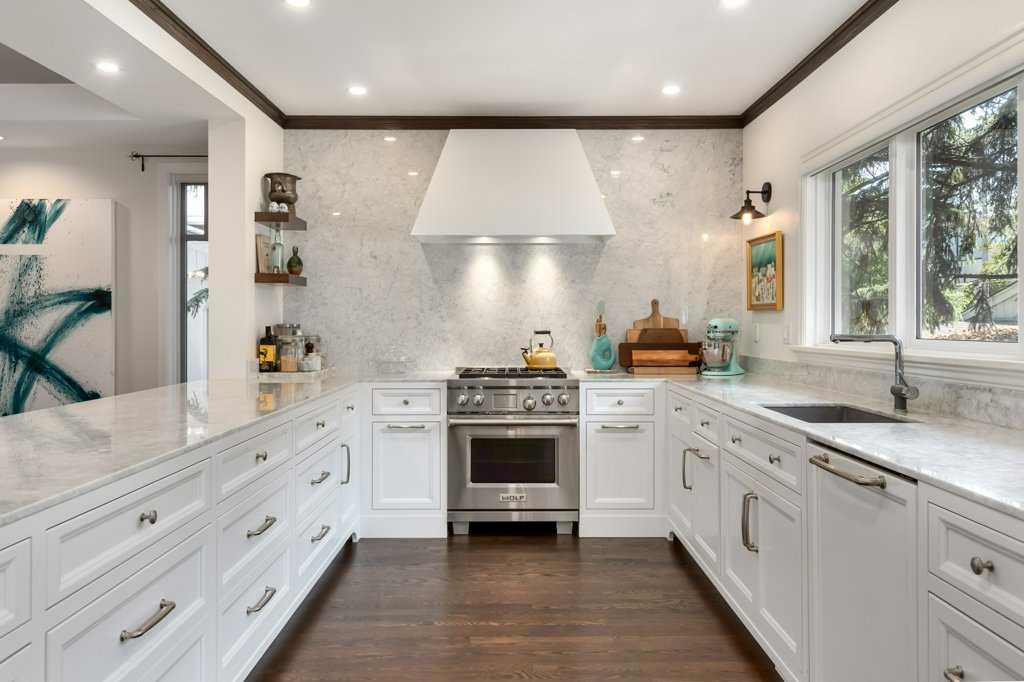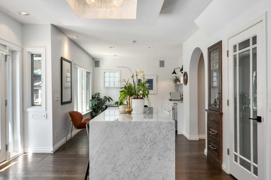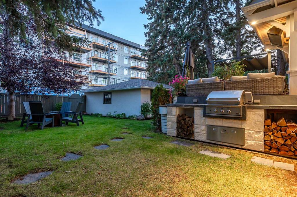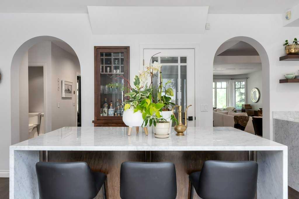 Welcome to 1623 32 Avenue SW, an inner-city home located on a 50′ x 125′ lot in the heart of South Calgary. This beautiful family home combines luxury, style, and functionality. The main floor is designed for entertaining and seamlessly integrates open spaces while maintaining an intimate feel. The living room features a cozy wood-burning fireplace. The kitchen is a chef’s dream, with expansive marble countertops and island, top-of-the-line appliances (including Wolf range, panelled Sub-Zero fridge, ultra-quiet Miele dishwasher), Kohler fixtures, and custom built-ins designed for effortless hosting. Adjacent to the kitchen, there is a sunny spot for the kitchen table and a coffee bar – perfect for gathering with friends and family. Step outside onto the expansive rear patio, complete with a lounge and dining area, ideal for outdoor entertaining. A built-in BBQ and warming drawer make for easy summer gatherings in the beautiful south backyard.