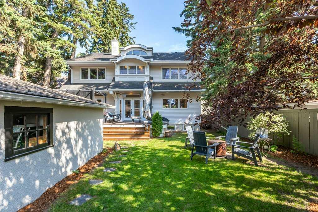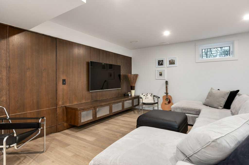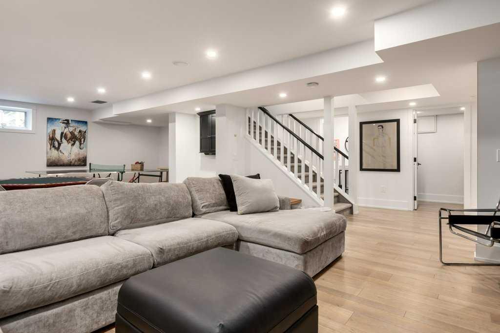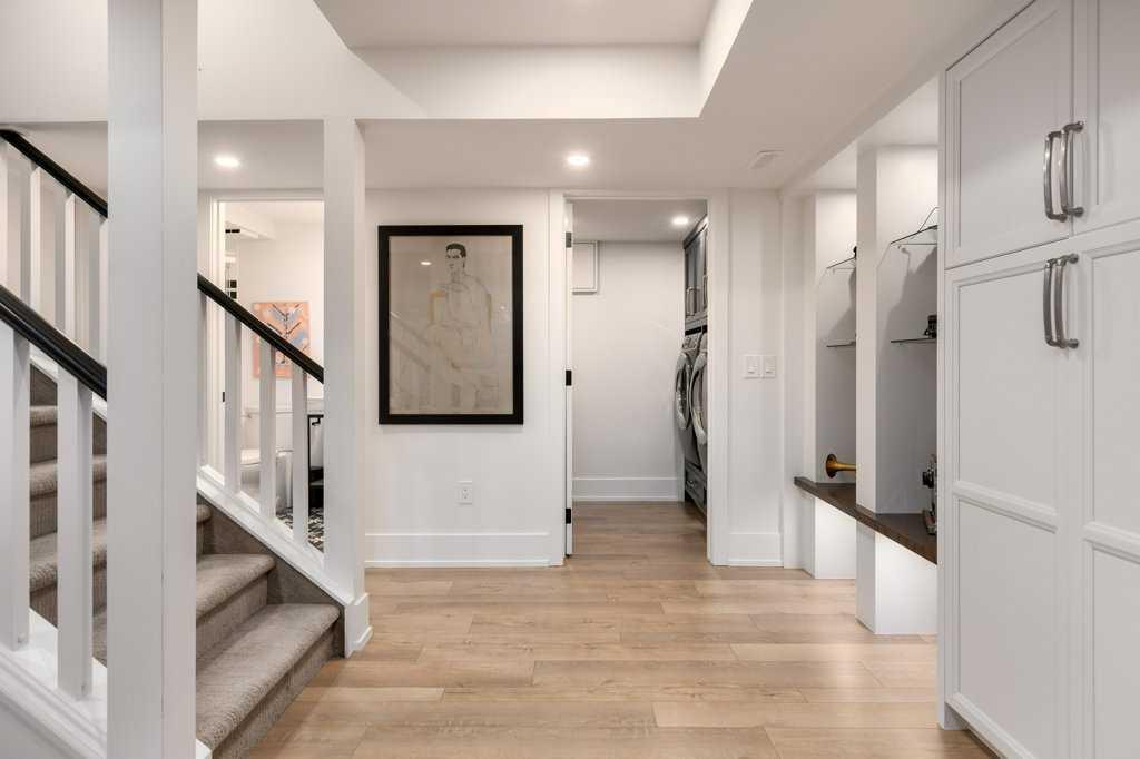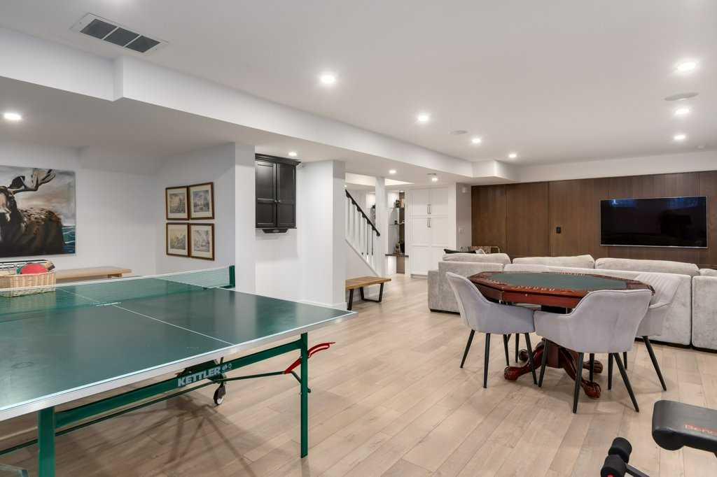 The recently renovated basement by Lupi Luxury Homes includes a gorgeous panelled wall with a hidden door leading to a cold storage room. The property also boasts a large double garage with alley access and ample room. For those looking for something more substantial, a development permit (dp 2024-02529) is in place (and plans are available) for an overheight (18ft) triple garage, perfect for a golf simulator setup. Recent ugrades include 2018 complete kitchen renovation and hardwood throughout main and upper floors, 2019 complete primary ensuite renovation, 2021 full basement renovation (Lupi Luxury Homes) 2022 main bath renovation, 2022 new roof, 2023 new eaves, 2023 new hot water tank.